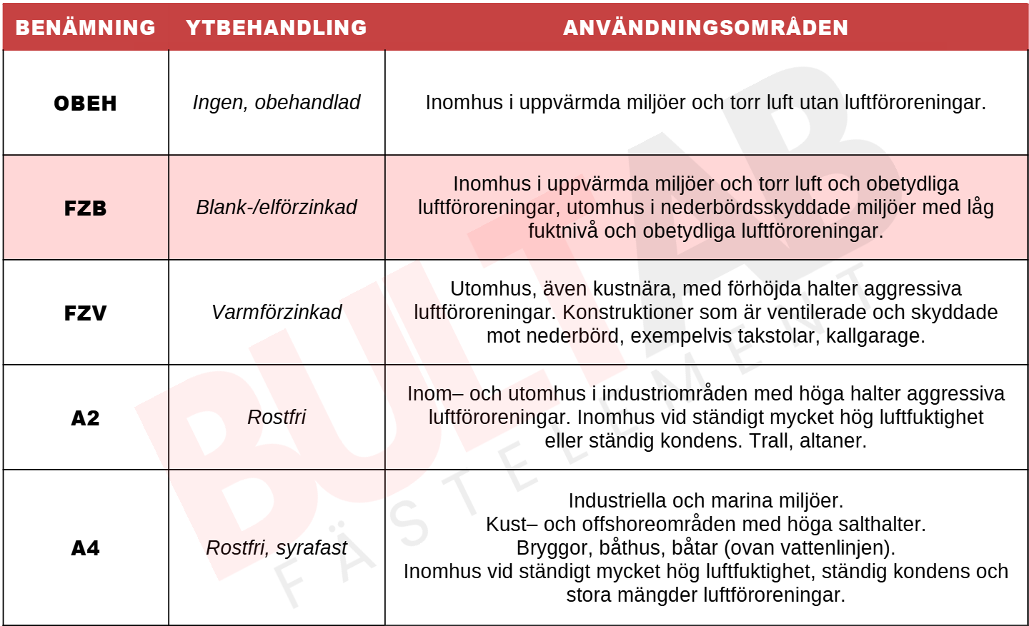 | Ytbehandling | FZB-ZN | |