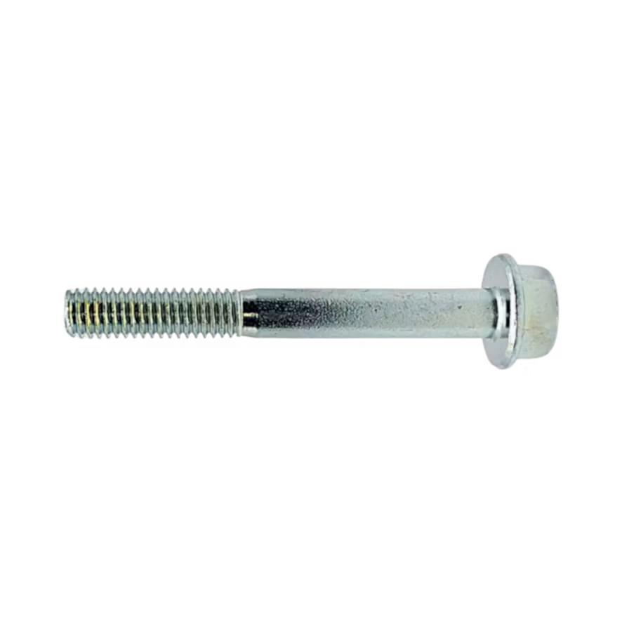 En blankförzinkad (FZB) sexkantskruv med slät fläns enligt EN 1665-standard.