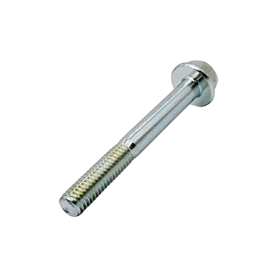 En blankförzinkad (FZB) sexkantskruv med slät fläns enligt EN 1665-standard.